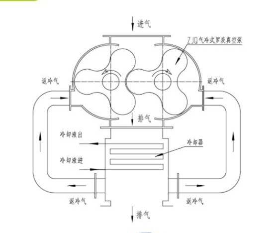氣冷羅茨真空泵是一種借助于外置冷卻器使氣體自動進行循環冷卻轉子和泵體,即使在很高的壓差下連續工作,也不會發生過熱過載的新型羅茨真空泵。 氣冷羅茨真空泵采用三葉型轉子型線,容積利用系數大,體積更小。配以合適的電機和冷凝器后,可在任意壓力下啟動,在任意壓差下運行。