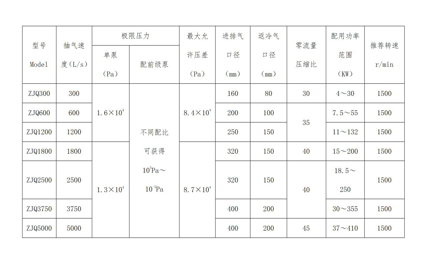 • 功能—適用范圍寬,因工作壓差大,有效地解決了普通羅茨真空泵因壓差過大、前級泵真空度差而造成的過載、過熱現象。