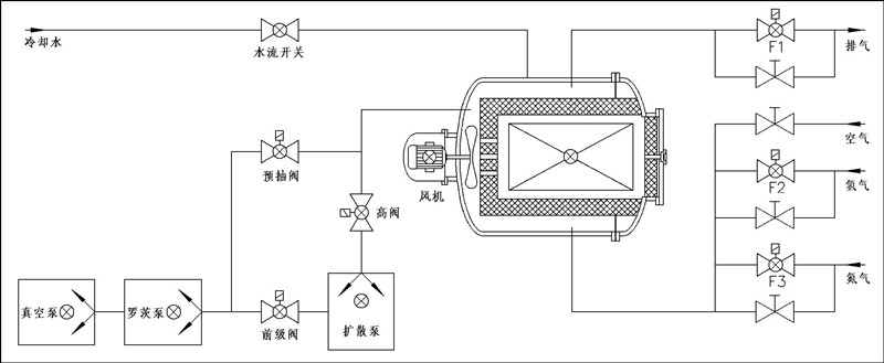 真空熱處理爐真空系統(tǒng)示意圖
